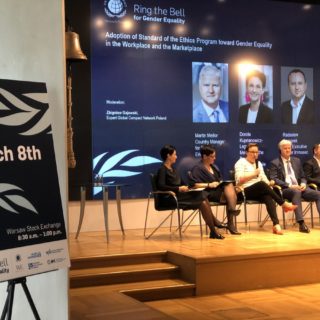 Międzynarodowy Dzień Kobiet uczciliśmy poprzez uczestnictwo w wyjątkowej konferencji „Ring the Bell for Gender Equality”, wspierającej działania na rzecz równości płci. Spotkanie obyło się w Giełdzie Papierów Wartościowych Warszawie, a jej organizatorem wspólnie z GPW było Global Compact Network Poland. Wspólnie uczestnikami konferencji rozmawialiśmy nt. etycznego przywództwa na rzecz równouprawnienia. Wydarzenie stanowiło część międzynarodowej inicjatywy, stworzonej przez United Nations Global Compact, UN Women, the Sustainable Stock Exchanges Initiative, International Finance Corporation, the World Federation of Exchanges oraz Women in ETFs.